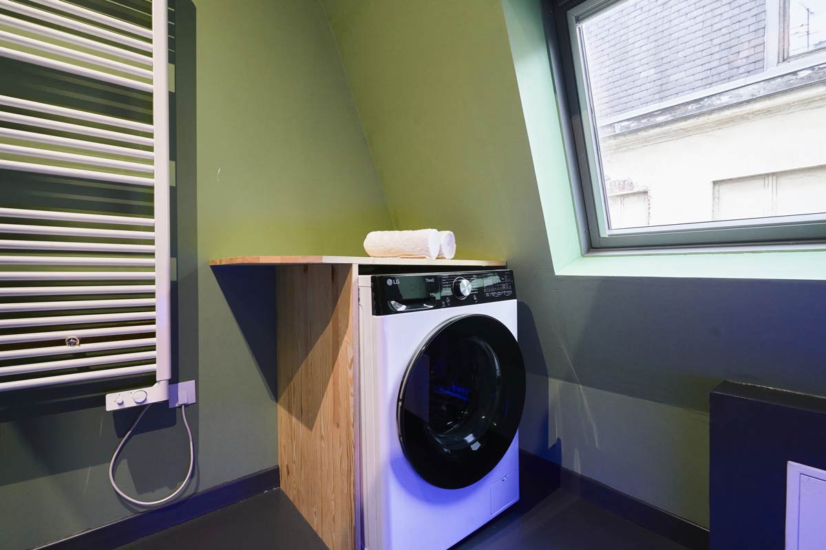 La salle de bain de notre suite avec spa rue Royale à Lille est un agréable lieu de détente. Équipée d’un spa moderne et d’un système de balnéothérapie, elle vous offre une expérience de relaxation ultime. Après une journée de visites, profitez des bienfaits thérapeutiques des jets massants et de l’eau chaude pour apaiser votre corps et votre esprit. Cet espace luxueux est conçu pour vous offrir un moment de bien-être incomparable, ajoutant une touche de luxe à votre séjour au cœur du Vieux-Lille.
